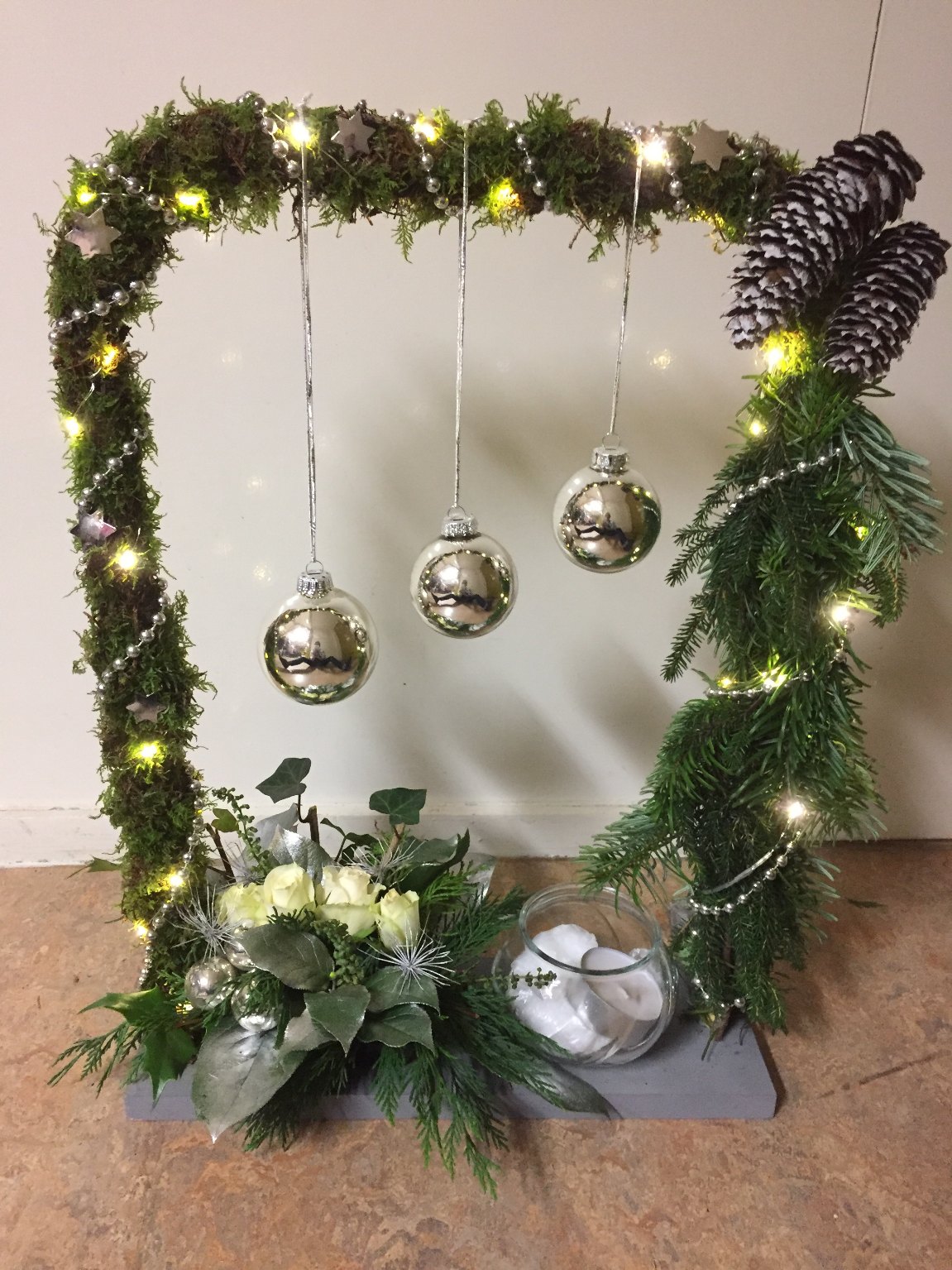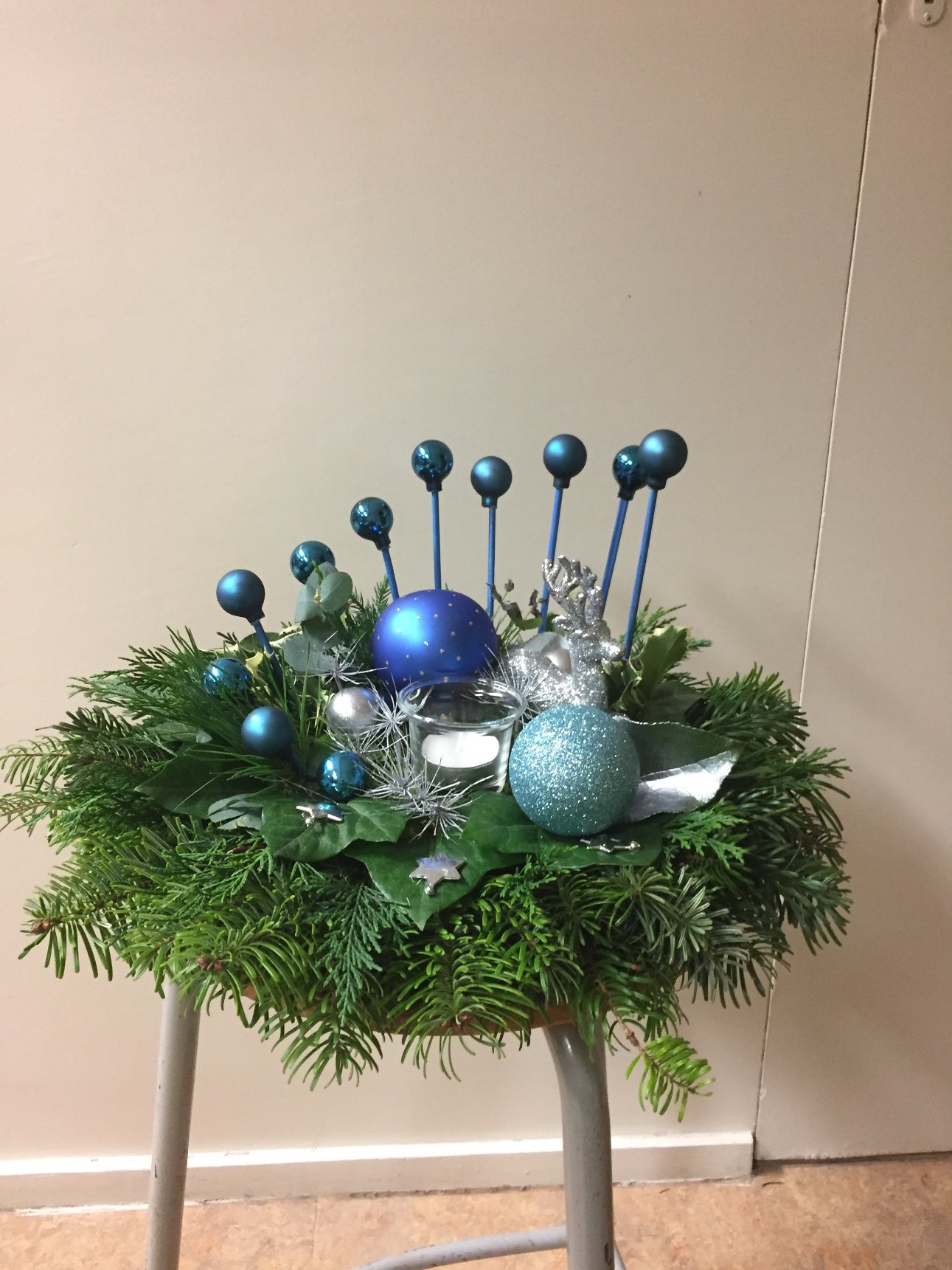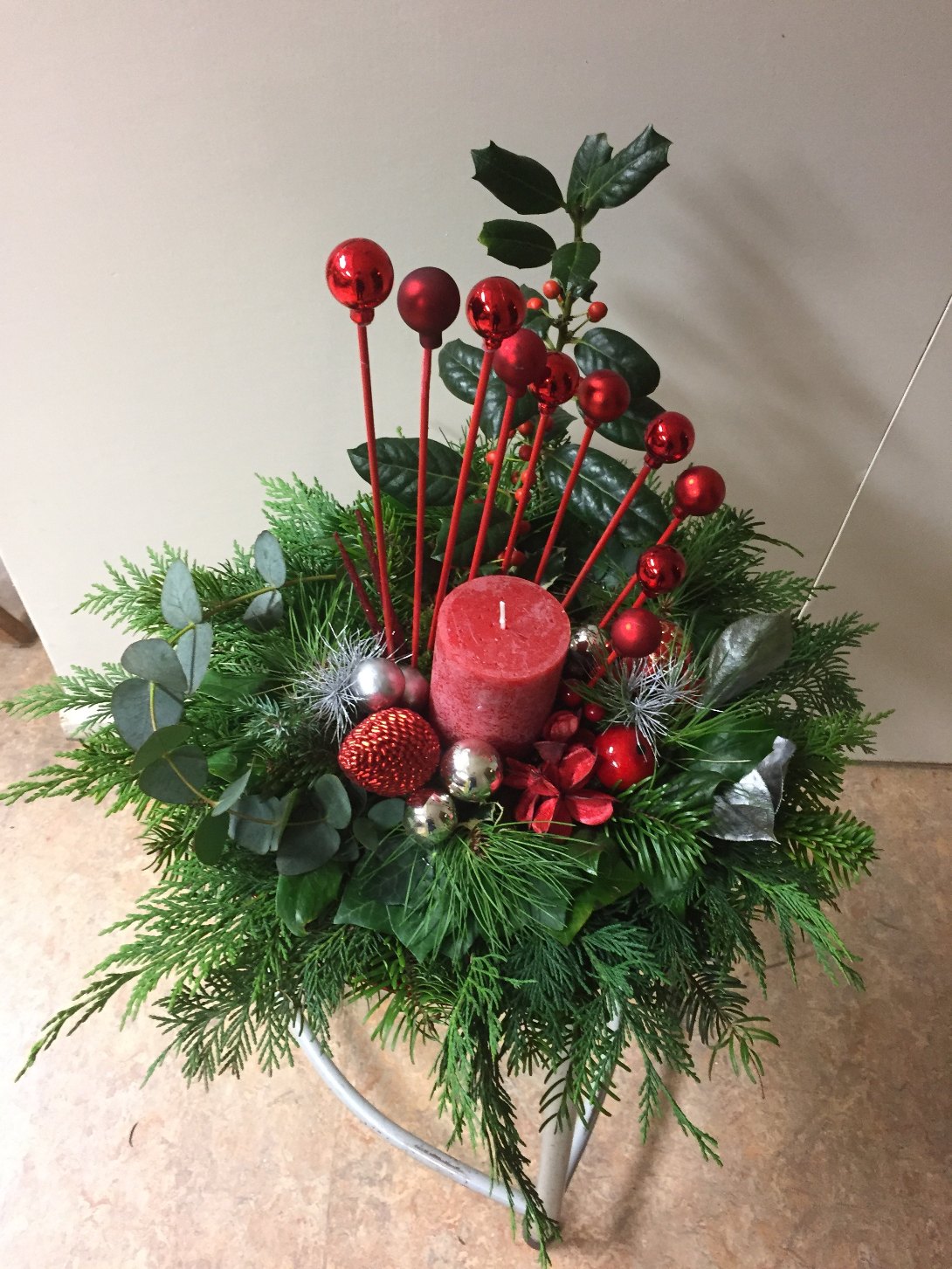 Een zeer geslaagde kerst workshop afgelopen december, op een schitterende locatie met leuke mensen. Het was een feestje met verrassende resultaten. Elke cursist heeft op eigen wijze een schitterend kerststuk gemaakt. Lekker na gezeten met een drankje en een hapje ging een ieder huiswaarts met een tevreden gevoel. Op naar Pasen voor de volgende uitdaging.